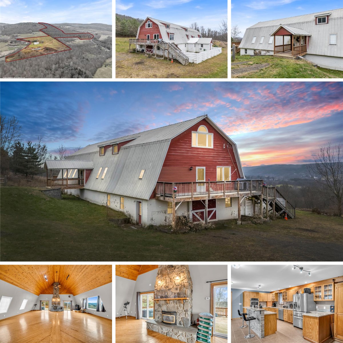 Remarks: Discover this exceptional modern barndominium-style home set on over 85 scenic acres in Upstate New York. The property includes a finished residence on 17+ acres plus an attached 67+ acre parcel with its own access road, a rustic cabin, and a private well. Enjoy remarkable privacy, open views, a pond, and ample space for recreation and future possibilities. The home features open living areas, natural finishes, radiant floor heating, a pellet stove, propane fireplace, and electric heat. A 40-panel free-standing solar array with two Tesla Powerwall batteries provides energy efficiency and backup power. The varied landscape, trails, and additional acreage offer flexibility for personal use or expanded accommodations. This is a unique opportunity combining land, modern comfort, and sustainability in the South New Berlin area.